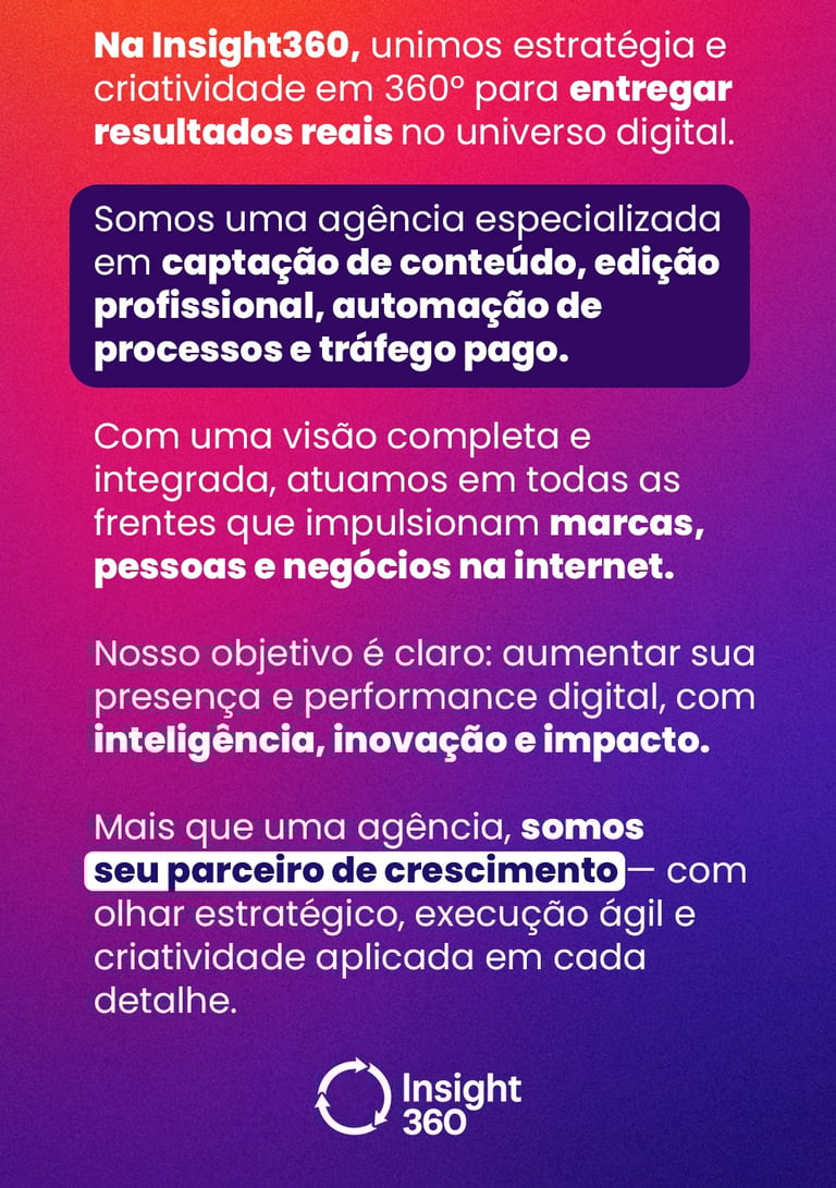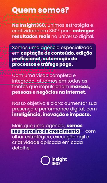 A Insight360 é uma agência criativa e estratégica focada em unir inteligência de marca, design e performance digital.